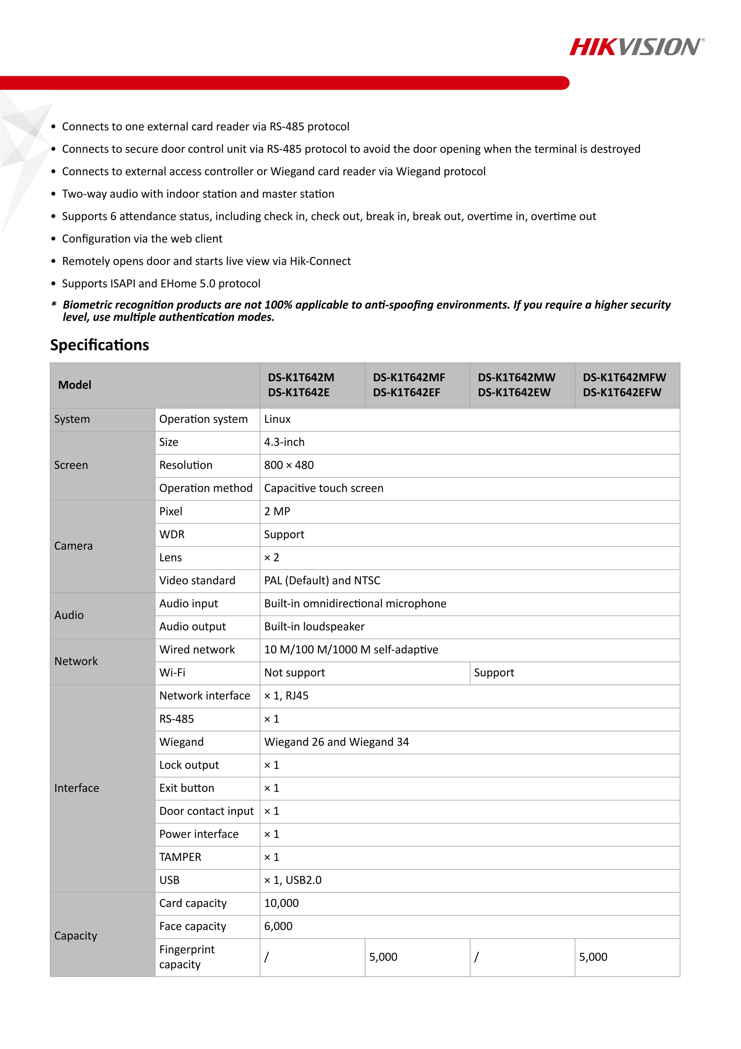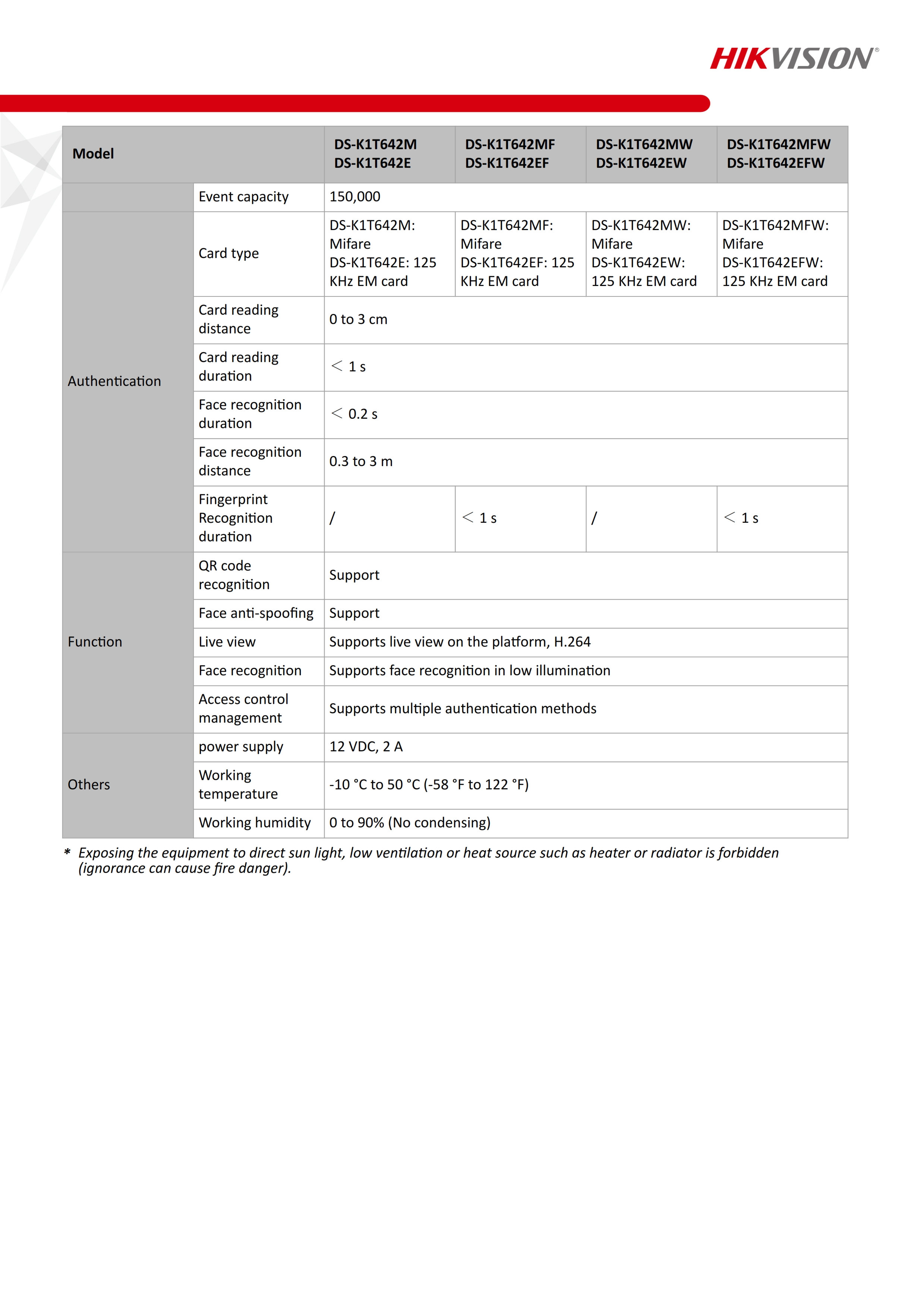 • ความจุ 6,000 ใบหน้า, ความจุสำหรับ Card 10,000 ใบ และความจุ 150,000 เหตุการณ์